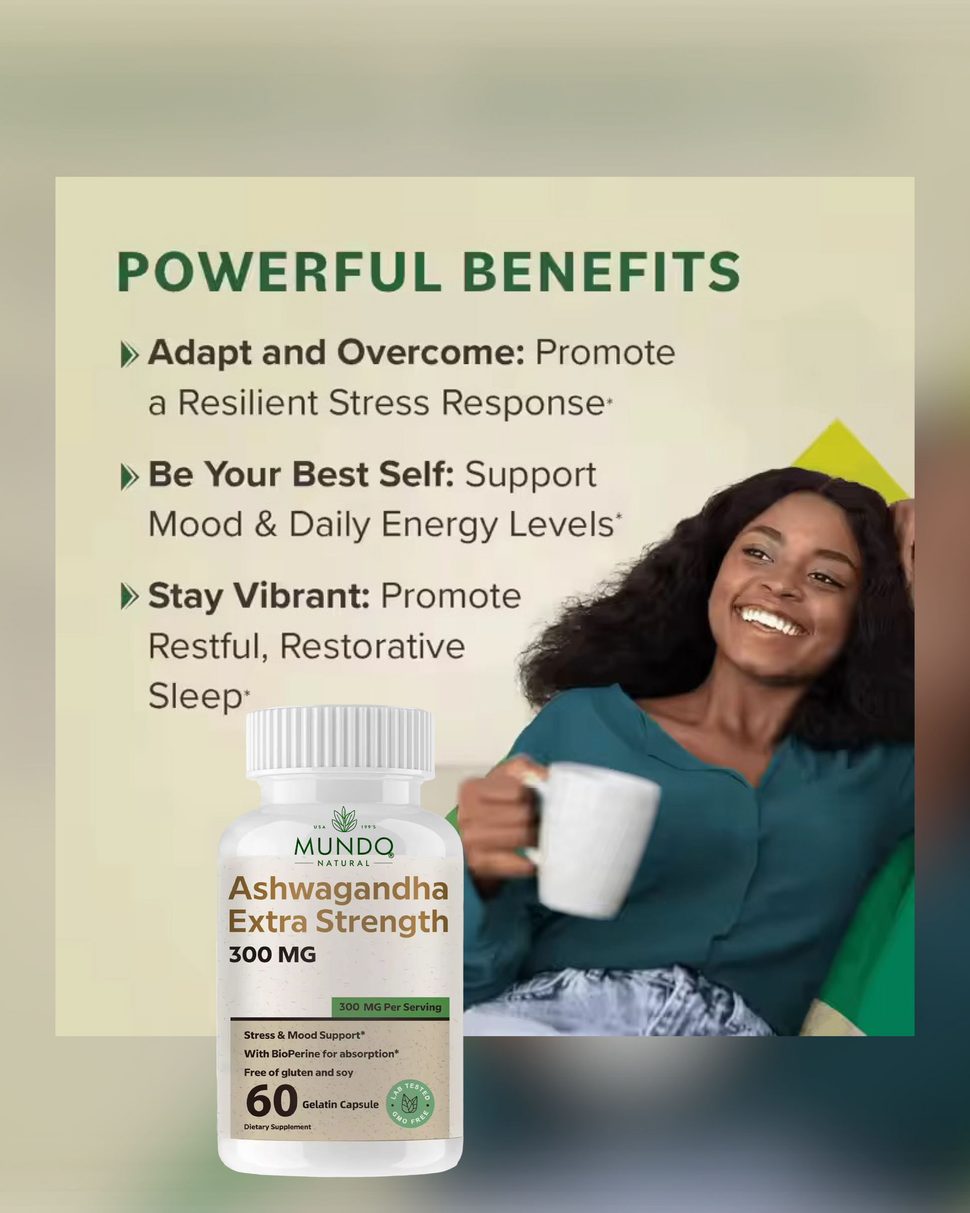 1. Reducción del estrés*: La ashwagandha ha demostrado reducir los niveles de cortisol, la hormona del estrés, en personas con estrés crónico.