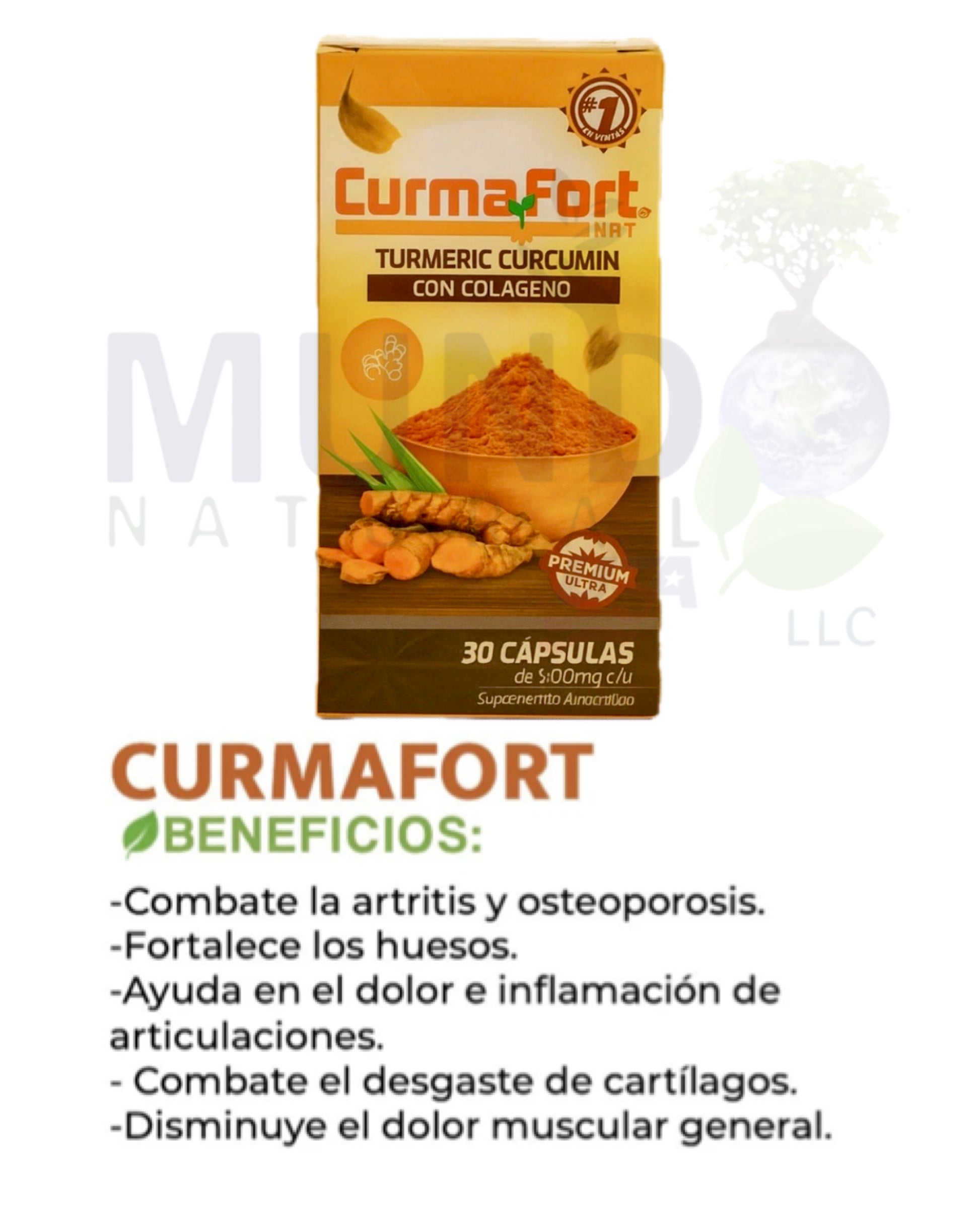 CurmaFort nat TURMERIC CURCUMIN con Colágeno, suplemento natural para el dolor de huesos.