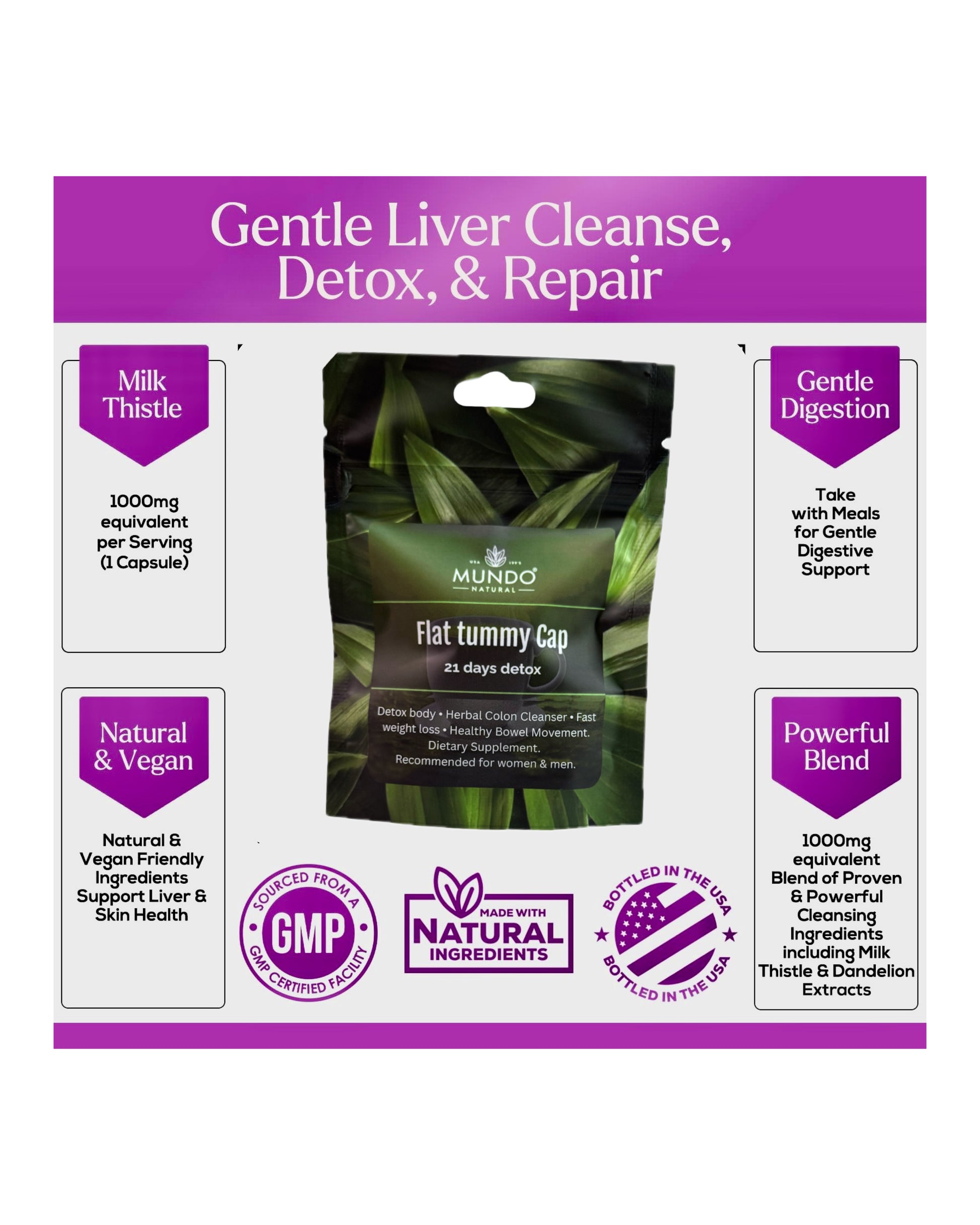 100 % natural diseñada para favorecer , Apoyo para la limpieza y desintoxicación del hígado reduciendo la hinchazón y mejorando la digestión. Su mezcla de ingredientes naturales ayuda a equilibrar el cuerpo y a promover una mejor salud intestinal.
