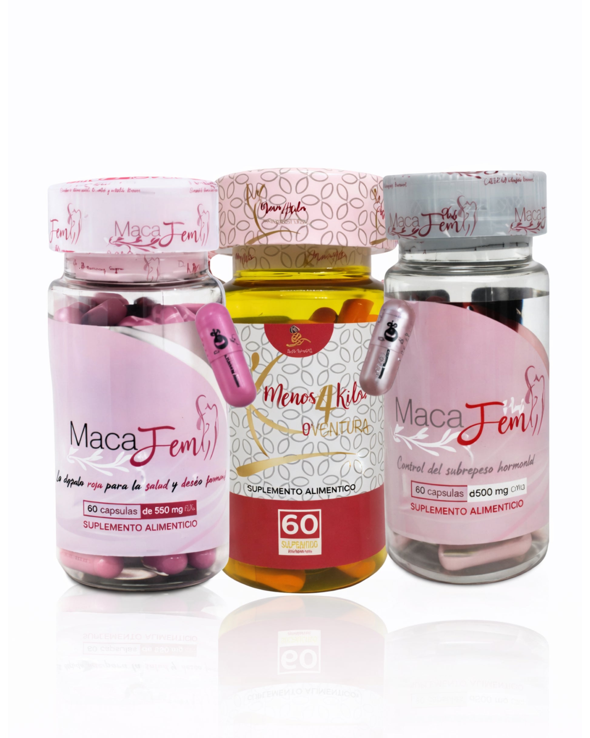 Ingredientes: Aguaje, Maca Peruana, Maca Roja, Maca Negra e Hinojo Planta.